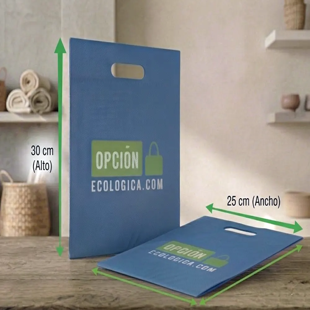 Bolsa suaje de 25 x 30 cm, perfecta para llevar objetos livianos con un diseño simple y amigable con el medio ambiente.